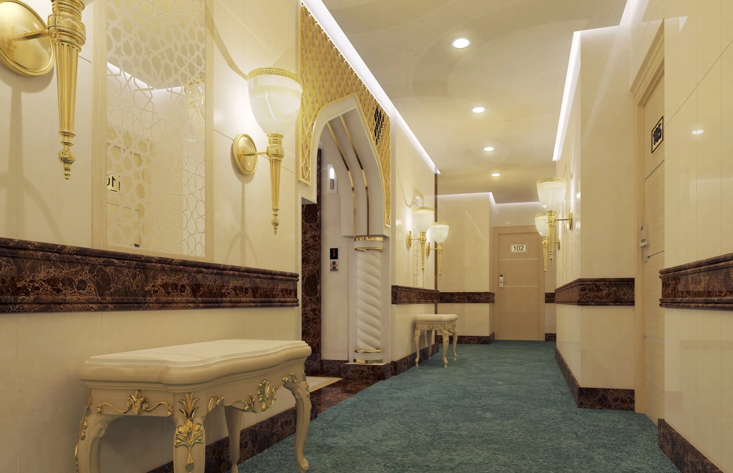 Al-Aziziyah Refahia Hotel is a four-star hotel located in the Al-Aziziyah district of Makkah Al-Mukarramah, developed on a land area of 850 m². The project consists of a ground floor, mezzanine floor, a dedicated restaurant floor, a services floor, and 14 hotel residential floors. The hotel accommodates a variety of guest room types, including standard rooms and suites, designed to provide a comfortable and functional hospitality experience that meets the needs of visitors and pilgrims while maintaining a balanced architectural and interior character. Our role was developing the interior design concepts and detailed designs for all finishing works, monitoring and supervising the execution of interior works to ensure alignment with the approved designs, and providing continuous technical and design support throughout the construction phase.