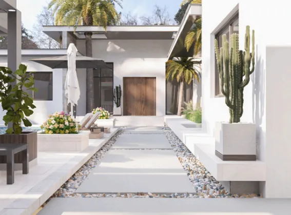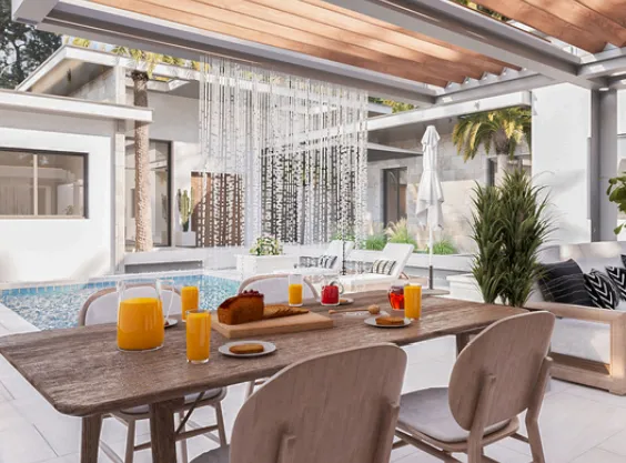 Modern villa with a private garden and pool, providing a luxurious and comfortable living experience.