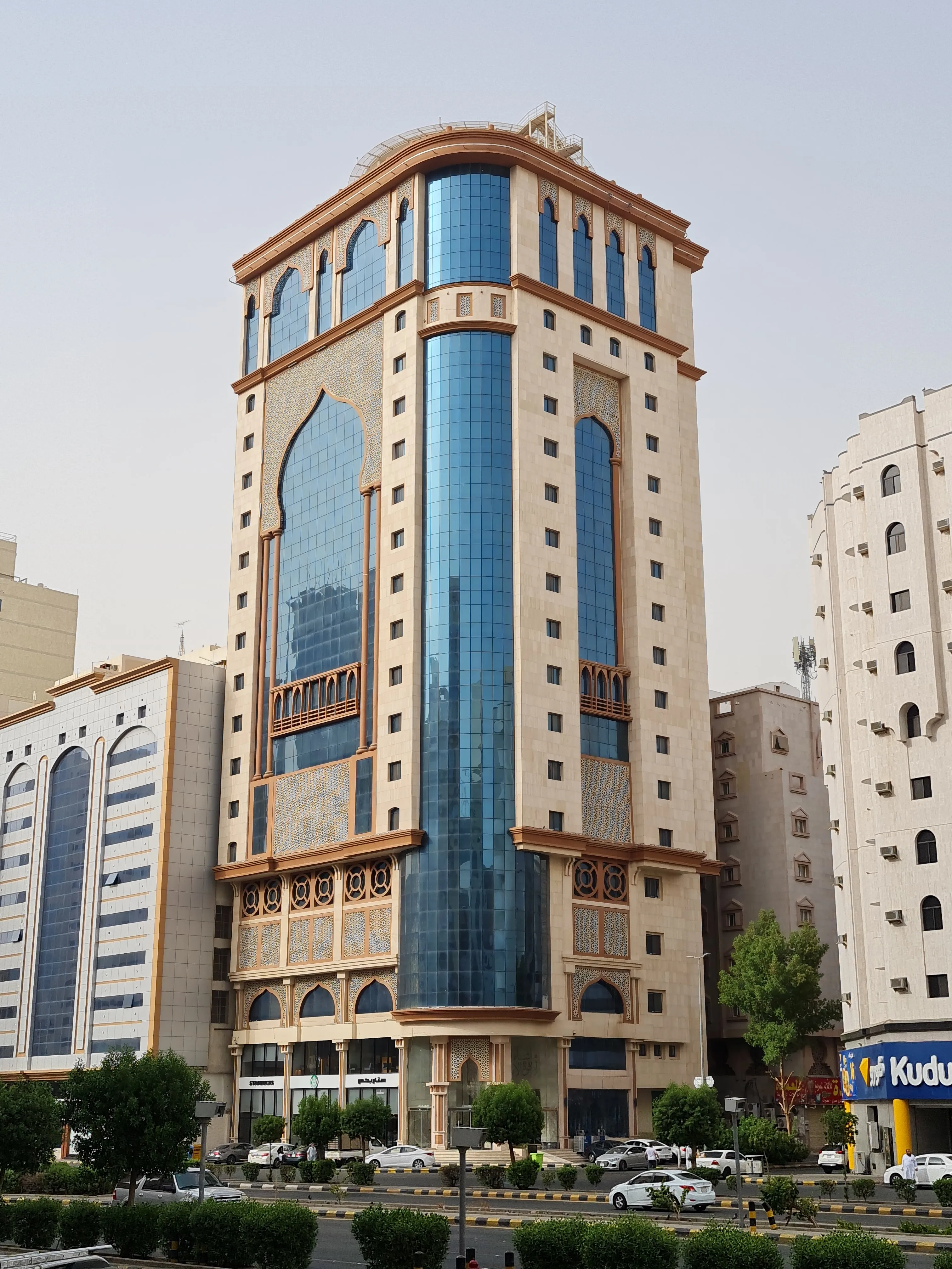 Four-star hotel in Makkah with 14 residential floors and various facilities.